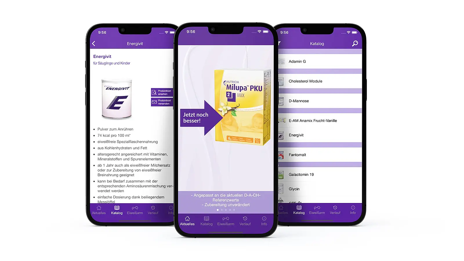 Nutricia Milupa ist seit mehr als 50 Jahren führender Spezialist der medizinischen Ernährung in Deutschland und bietet eine umfangreiche Produktpalette der medizinischen enteralen Ernährung für Menschen mit seltenen erblichen Stoffwechselstörungen. Ziel war es, dieses Produktporfolio für Ärztinnen und Ärzte, Ernährungsfachkräfte und anderes medizinisches Fachpersonal in Deutschland, Österreich und der Schweiz auch mobil zur Verfügung zu stellen.