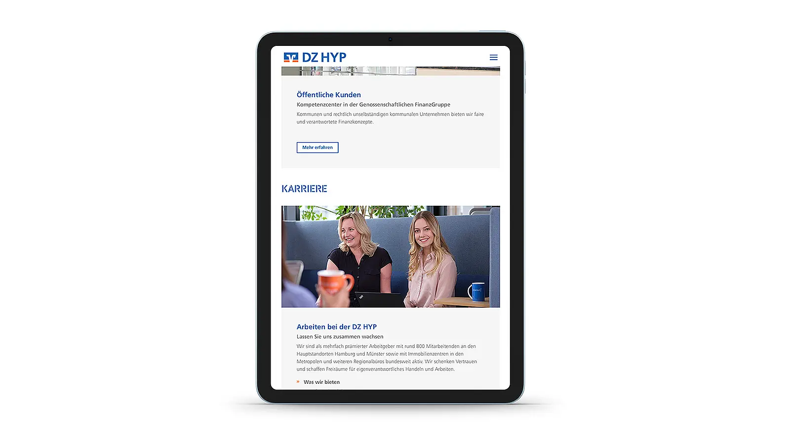 Für die DZ HYP gestaltete FUSE die Corporate Website neu und setzte sie im CMS TYPO3 um. Die DZ HYP ist Teil der Genossenschaftlichen FinanzGruppe Volksbanken Raiffeisenbanken und eine führende Immobilienbank in Deutschland.