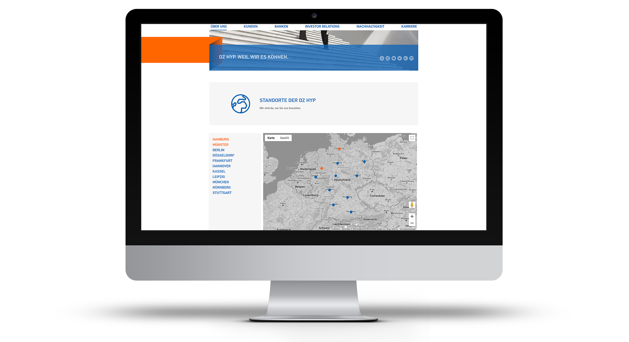 Aufgrund des Zusammenschlusses von DG HYP und WR Bank entstand ein neuer Online Auftritt. Wichtigster Anspruch der Website sind Kundenfreundlichkeit und Übersichtlichkeit.
